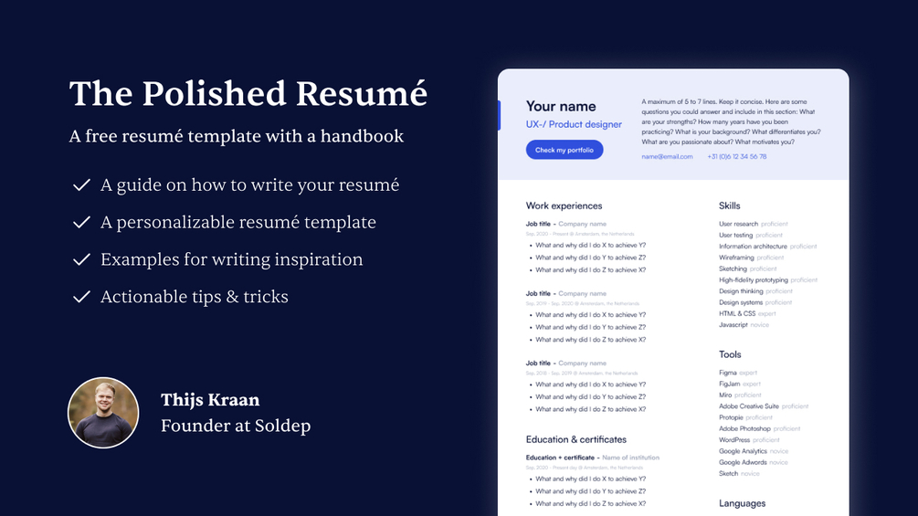 A Figma template for creating your resumé and a handbook that guides you through writing one.